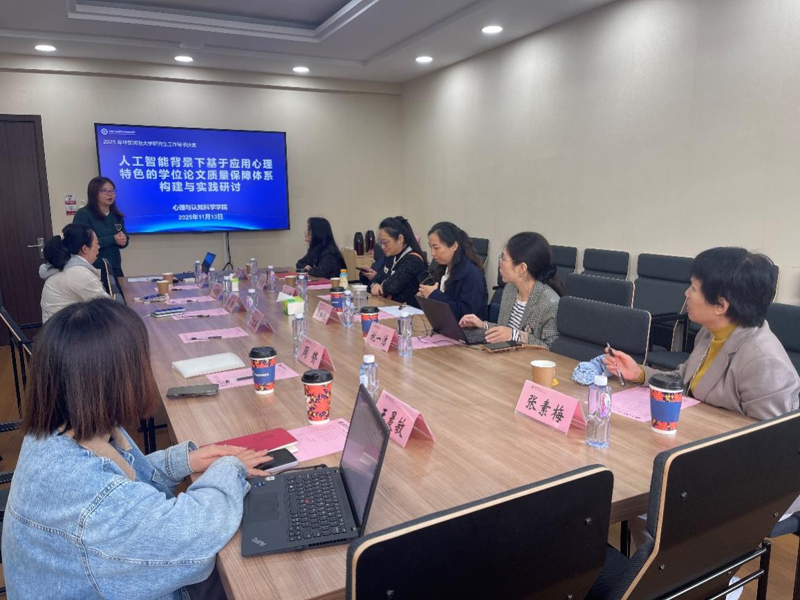 2025年11月13日上午,365英国上市公司研究生工作秘书沙龙“人工智能背景下基于应用心理特色的学位论文质量保障体系构建与实践研讨”在俊秀楼313顺利举行。活动旨在搭建跨院系交流平台,探讨人工智能背景下学位论文质量保障与实践成果评价的创新路径。365英国上市公司学位管理办公室张寅艳、经济与管理学院牟昱洁、计算机科学与技术学院彭艳霞、国际汉语文化学院孙辛昕、教育学部教学事务部姚一洁、公共管理学院张素梅受邀出席,心理与认知科学学院MAP中心副主任汪红英及全体研究生秘书共同参与。活动由心理与认知科学学院研究生秘书郭琼主持。