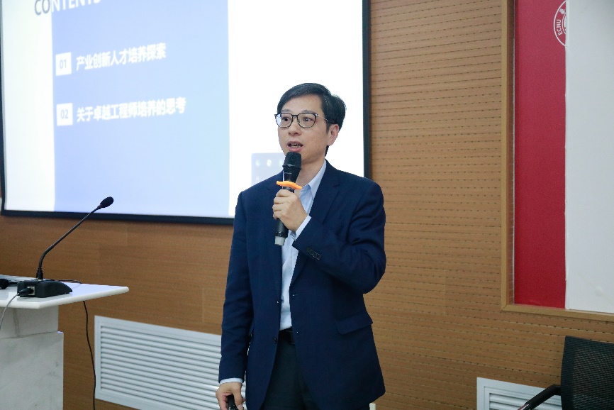 企业代表叶恒、杨一佳、王凯分别根据所属行业的特点对联合培养人工智能领域卓越人才提出了更为严格的要求和期许。随后金澈清、王祥丰、王江涛分享了院系产教融合人才培养的经验,就学生在实践过程中可能遇到的问题与企业进行深入的沟通。卓越工程师学院学生代表对学校以及企业提供的资源表示感谢。