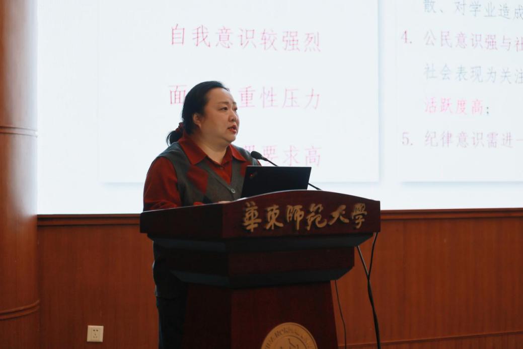 学工部副部长、心理健康教育与咨询中心主任庄瑜以“导学关系与研究生学生工作实务”为题,深入分析研究生心理发展特点及常见问题表现,分享构建和谐导学关系的方法和策略,为导师提供相关指导。