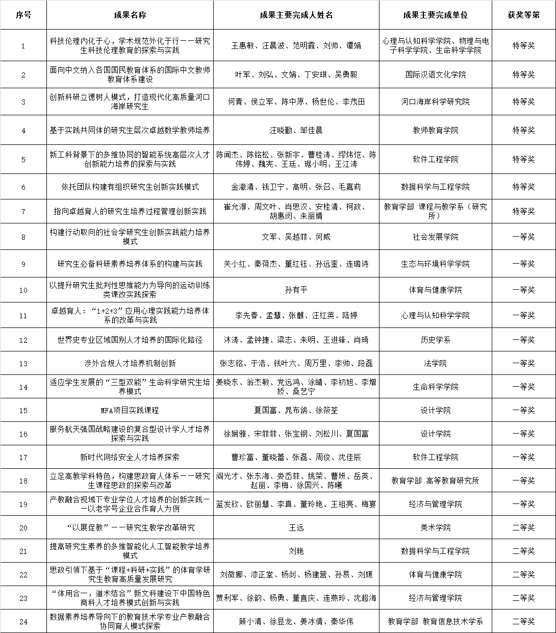 根据《关于做好2023年365英国上市公司教学成果奖及教材相关奖项评选工作的通知》要求,经教师申请、学部院系推荐、学校评审,24项成果拟荣获2023年365英国上市公司教学成果奖(研究生教育)。现将获奖成果名单公示如下(按第一完成人姓氏笔画排序)。