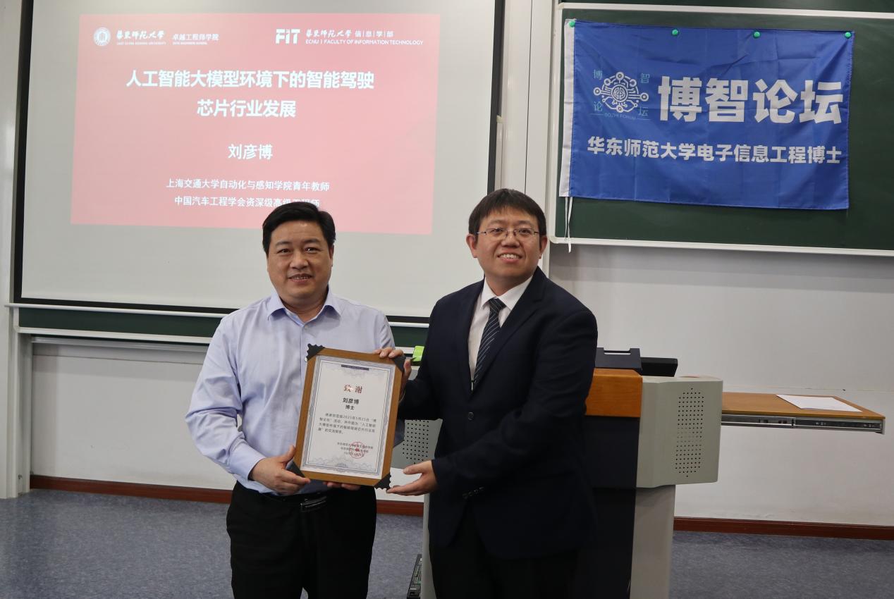随后,2024级电子信息工程博士班的博士生、上海交通大学自动化与感知学院青年教师、中国汽车工程学会资深级高级工程师刘彦博作了题为“人工智能大模型环境下的智能驾驶芯片行业发展”的分享报告。他以自动驾驶系统中的数据传输芯片等核心架构为例,介绍了智能驾驶芯片行业的发展现状与趋势,分析了在大模型与大数据浪潮下,企业所面临的机遇与挑战。同时,结合大模型技术的发展,分享了典型企业的实践案例,展现了智能驾驶芯片与算法协同演进的新方向。