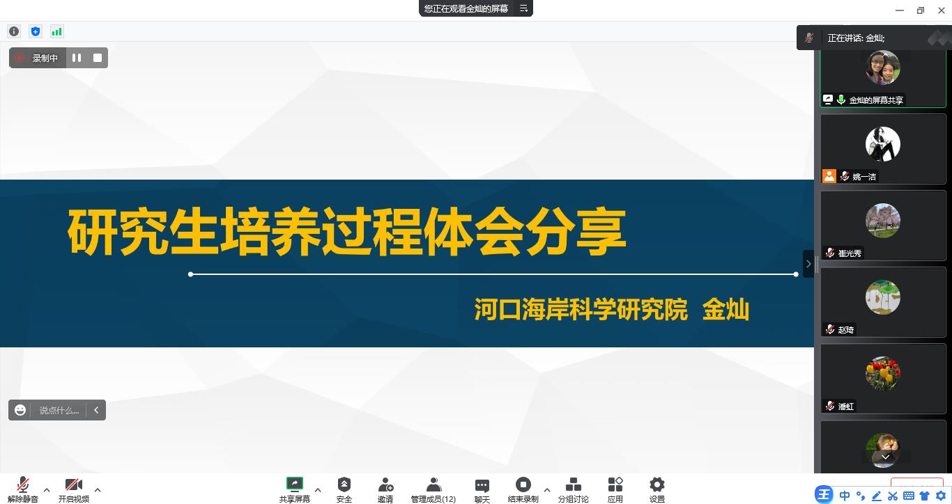 随后,河口海岸科学研究院研究生工作秘书金灿、教育学部课程与教学系(研究所)研究生工作秘书朱丽婧分别从各自工作实际出发,分享了本单位博士研究生培养过程质量管理的特色与成效。金灿重点介绍了河口海岸科学研究院在组织博士生“资格考试”、“开题报告”和“年度报告”的具体做法。他们创新“年度报告”的考核形式,以院系组织研究生学术沙龙的形式开展年度报告考核,针对不同年级分别采用口头报告或海报展示等形式,对于表现优秀的博士生给予奖励。以上举措为博士生提供了更大范围的展示平台,促进了同学之间的相互交流,也极大调动了同学们的学术热情。最后,金灿还就资格考试的分流淘汰难度,关键环节考核的组织形式和实施效果等提出了自己的思考与困惑。