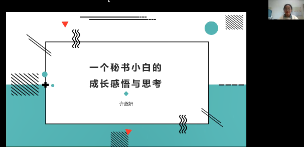 在经验分享环节,传播学院许超妍代表新秘书群体向大家分享了“一个秘书小白的成长感悟与思考”,主要从以下三个方面进行阐述:在借鉴摸索中厘清工作内容、在实践摸索中优化工作效率、在夯基笃行中提升育人成效。