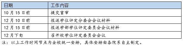 各学部、学位评定分委员会进行学位审查,按要求向学位办报送各项材料,同时向学位办提交电子签报。