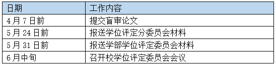3. 根据本学期学位申请工作的总体安排,建议申请人于4月7日前提交盲审论文。对个别因特殊原因无法按时提交论文的研究生,也可在盲审截止日之后提交盲审论文,但将无法保证按期收到盲审专家的评审结果,也无法保证能够参加本学期的学位申请。