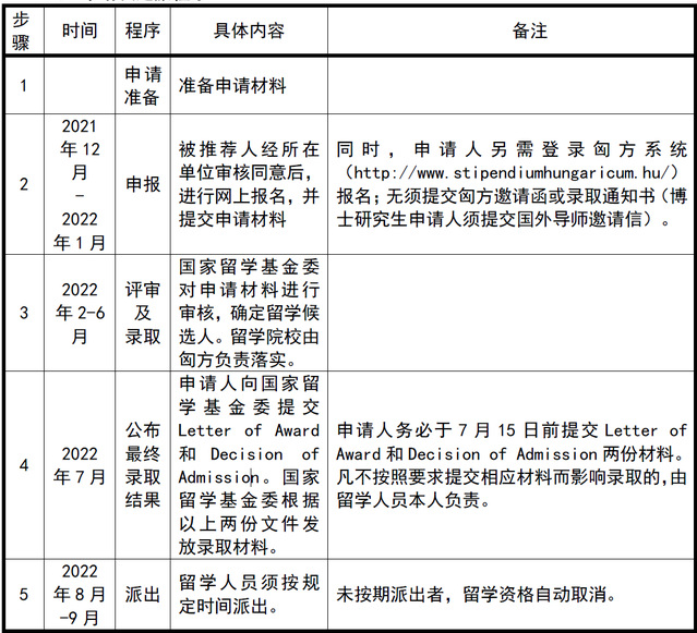 (网上申报时具体留学期限请以匈方接收院校学制为准,申请匈语预科教育人员,留学期限应在原学制基础上增加12 个月。)
