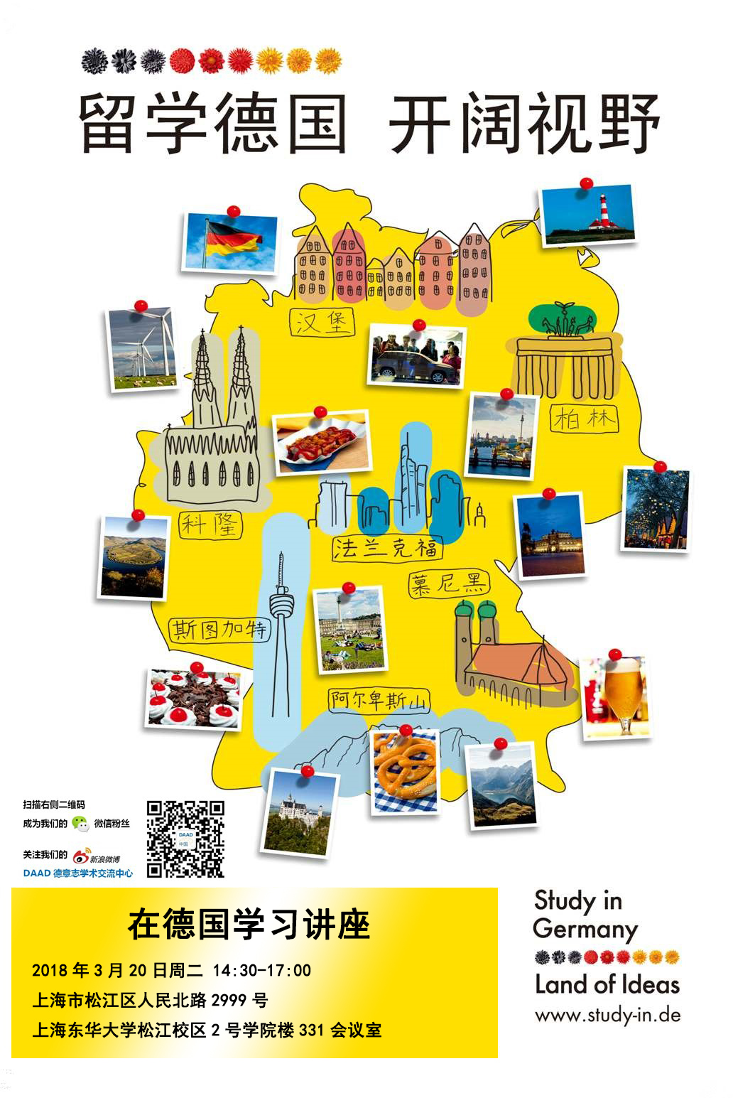 2018 DAAD德国留学巡讲活动将在上海举办,讲座主题为“在德国学习”。本次活动将由DAAD上海代表处负责筹划。届时,DAAD将携德国高校与机构代表向所有对留学德国感兴趣的与会者介绍德国高等教育概况以及针对中国学生入学条件方面等全面赴德留学和签证信息。报告结束后,提供个别咨询环节和工作人员进行一对一的交流和询问。具体信息如下: