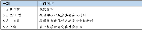 各学部、学位评定分委员会进行学位审查,按要求向学位办报送各项材料,同时向学位办提交电子签报。